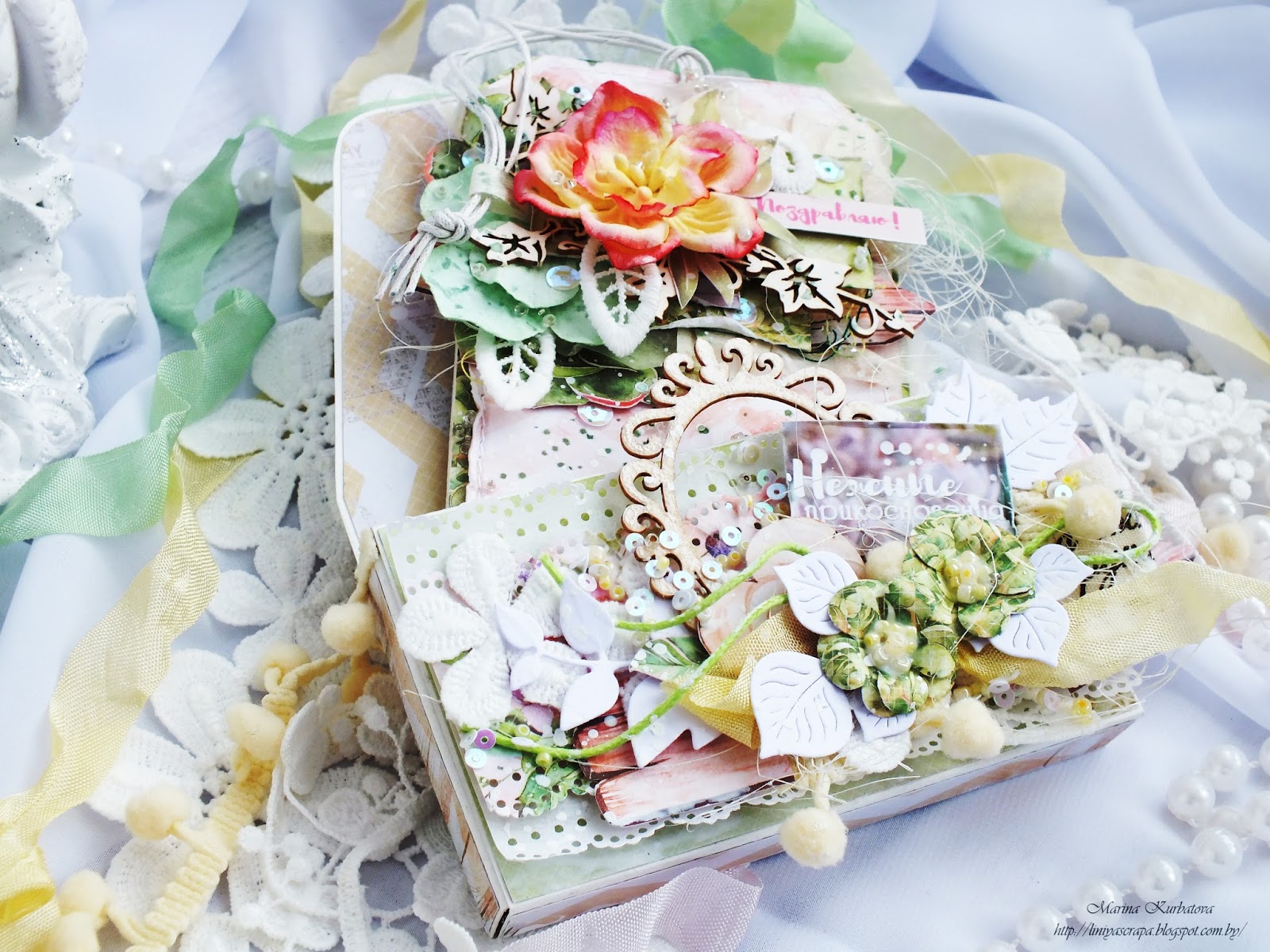 мы упаковываем наши открыточки, так сказать помещаем одну красоту в другую)